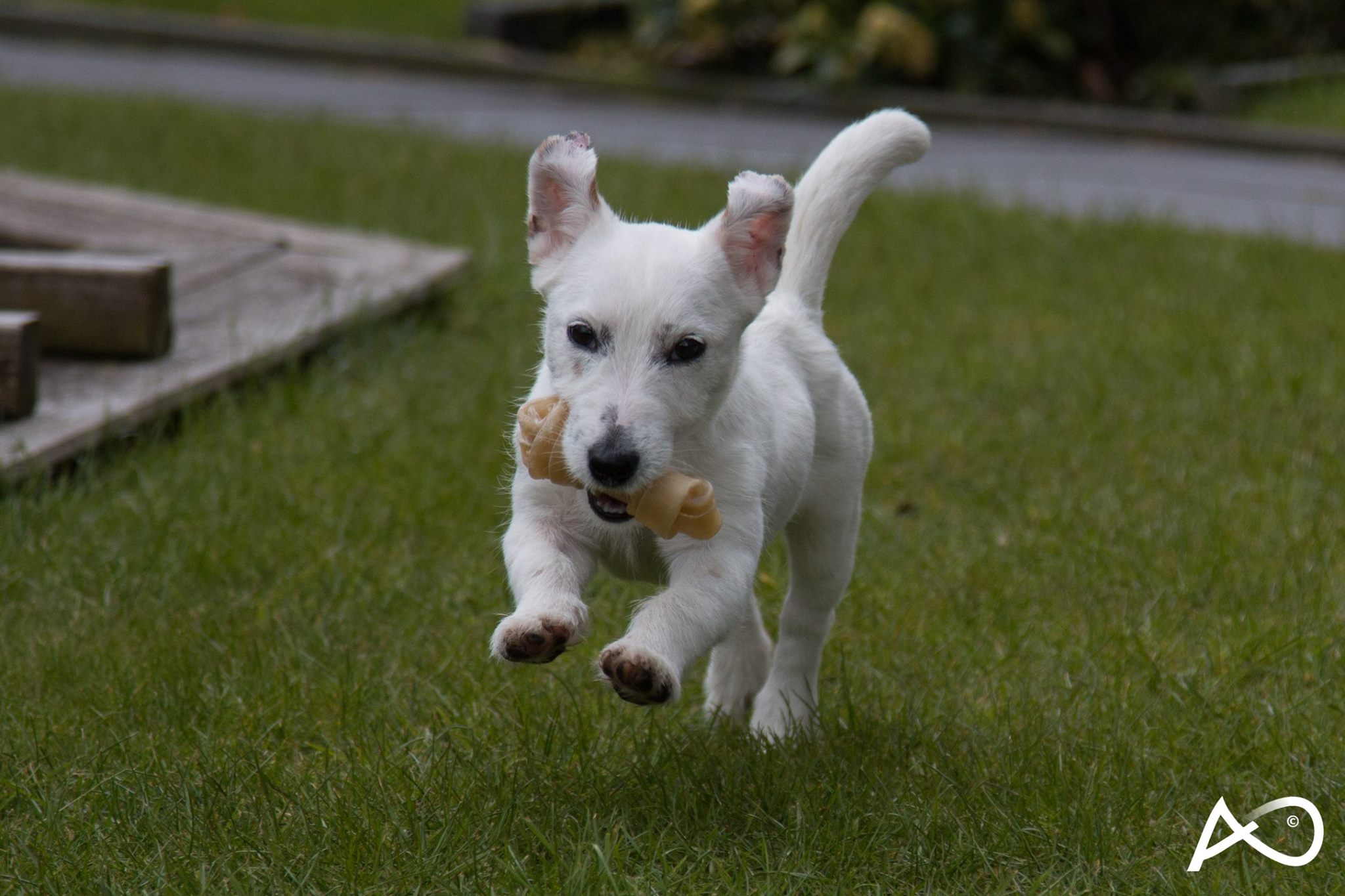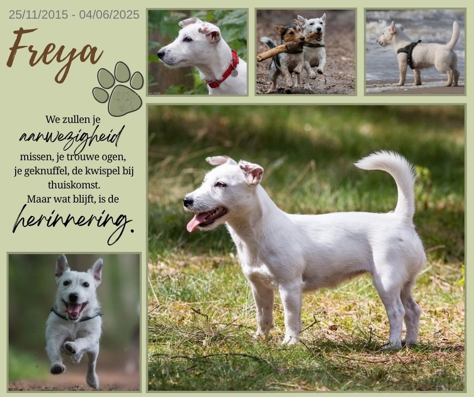 Haar start was niet makkelijk. Kort nadat ze bij ons kwam, bleek haar heup volledig vergruisd en moest ze geopereerd worden. Een zware tijd, maar Freya toonde meteen haar veerkracht. Dankzij veel liefde, zorg en zwemmen om haar spieren sterk te houden, bloeide ze op tot de vrolijke en actieve hond die ze nu is.